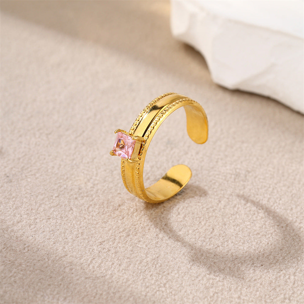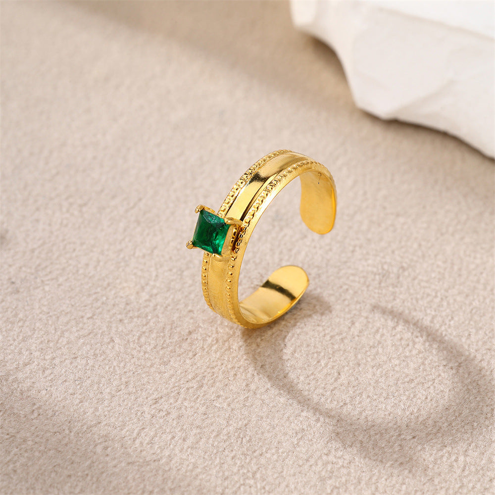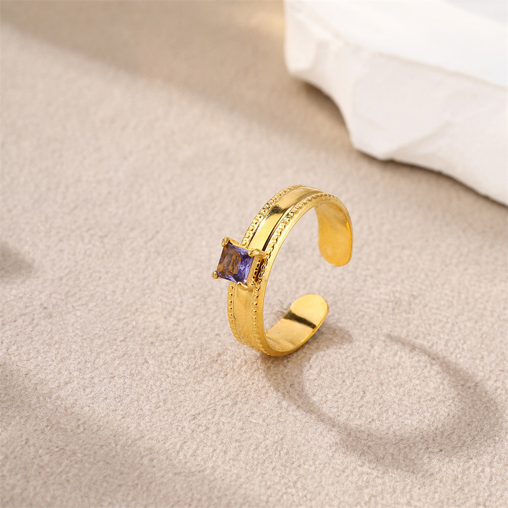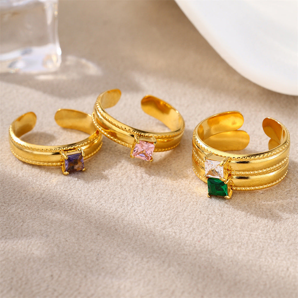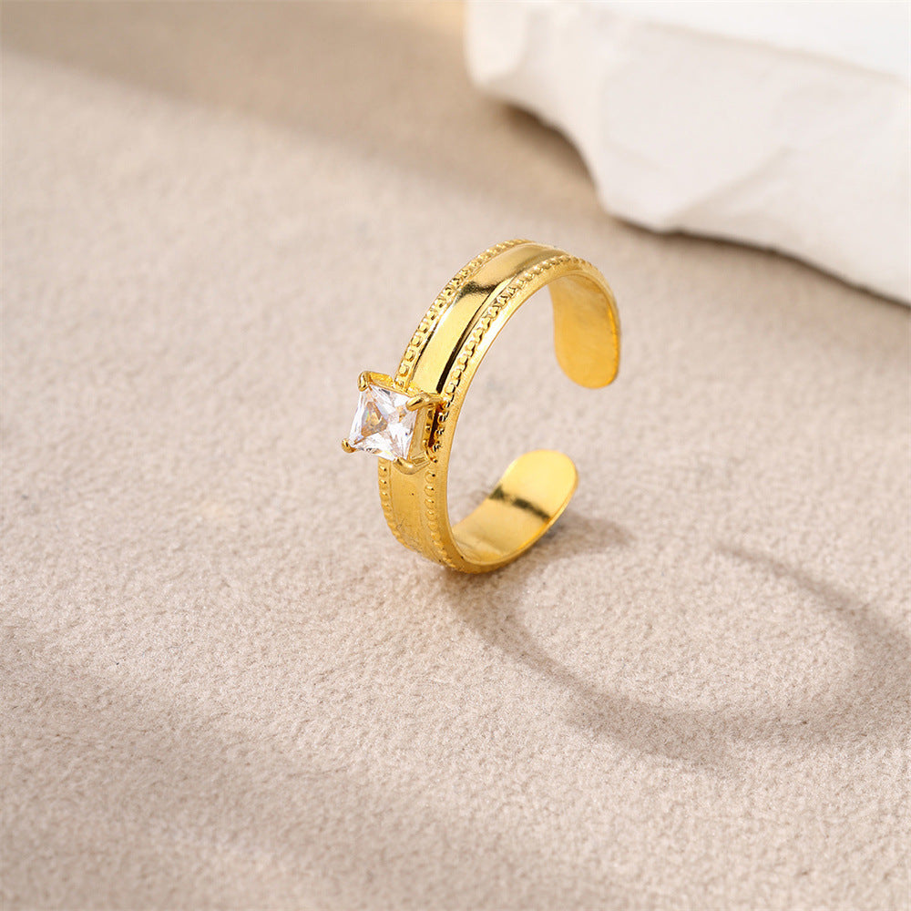 18k Yellow Gold-plated Square Cubic Zirconia Solitaire Band Ring