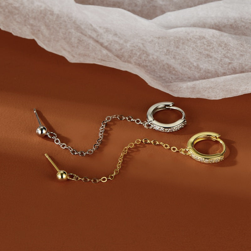 Elevate your everyday look with these .925 Sterling Silver huggie hoops featuring a unique stud connector design. Available in your choice of elegant white gold or warm yellow gold plating, they offer both durability and timeless style. Their compact size ensures comfortable wear while adding a subtle sparkle, making them perfect for any occasion—whether dressing up or down. These versatile hoops are designed to seamlessly blend with your favorite jewelry pieces, enhancing your collection with classic sophistication.