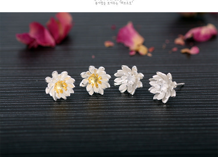 .925 Sterling Lotus Flower Stud Earrings with gold accent