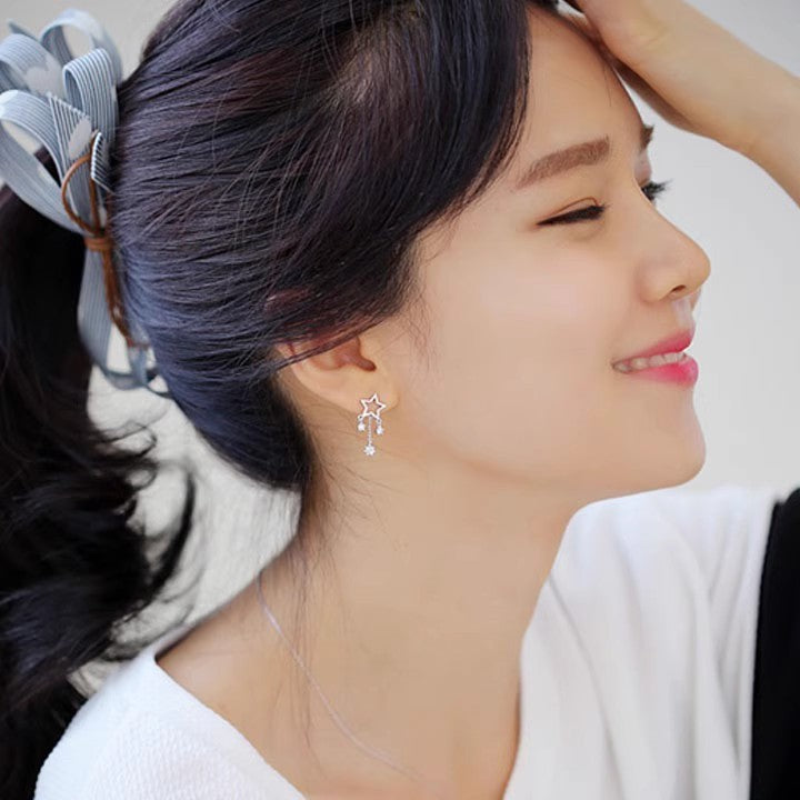 .925 Sterling Star and Cubic Zirconia Tassle Earrings (White or Yellow Gold)