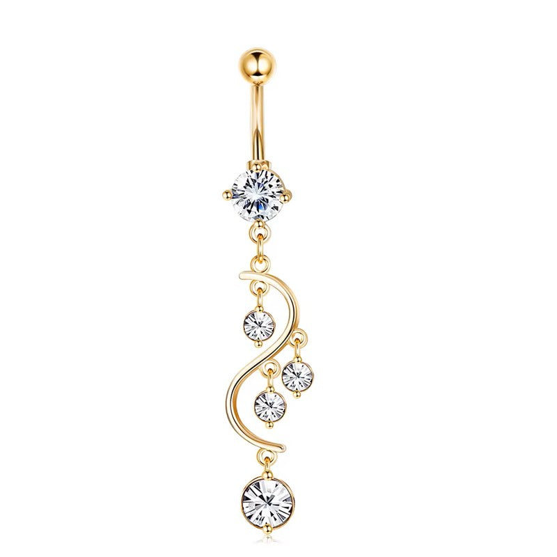 Gold-plated Surgical Steel Naval / Belly Piercing Jewelry with Cubic Zirconia ** Buy 2 Get 1 FREE ** Mix & Match Across Products