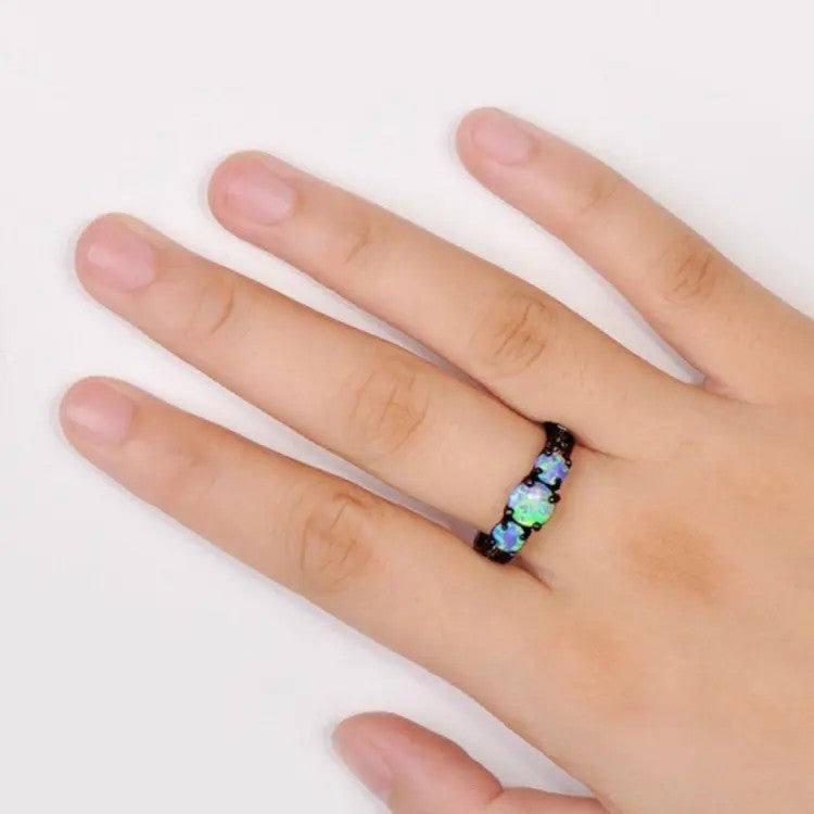 Elevate your style with this stunning gunmetal-plated stainless steel ring featuring a lab-created blue moonstone centerpiece. The captivating blue hues shimmer beautifully, enhanced by delicate pave accents that add just the right touch of sparkle. Durable and eye-catching, this ring offers a unique blend of modern elegance and lasting quality, perfect for making a memorable statement every day.