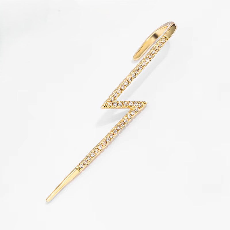 Lightening Bolt Earring (single) Gold Plated with Gemstone Pave (lab-created)
